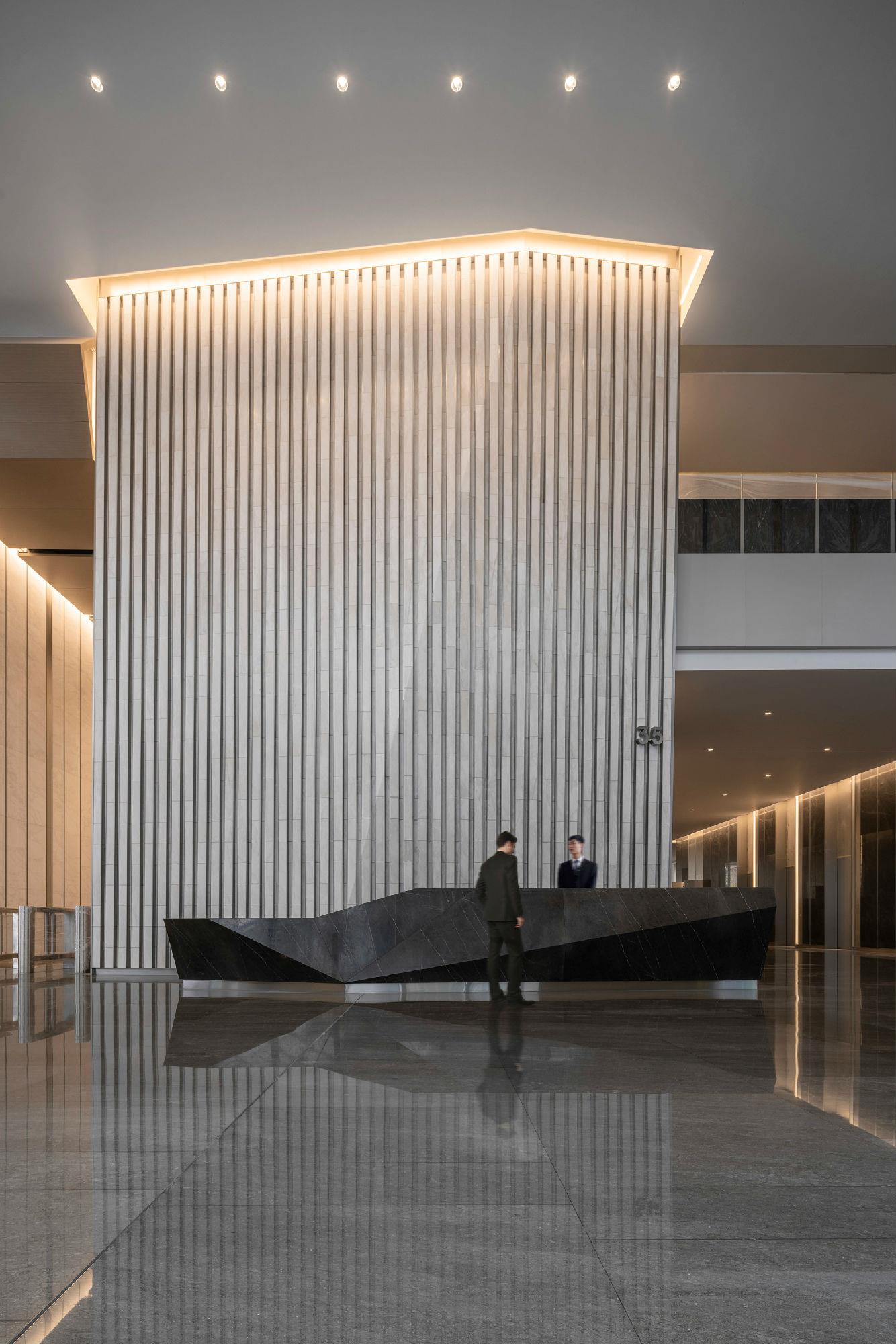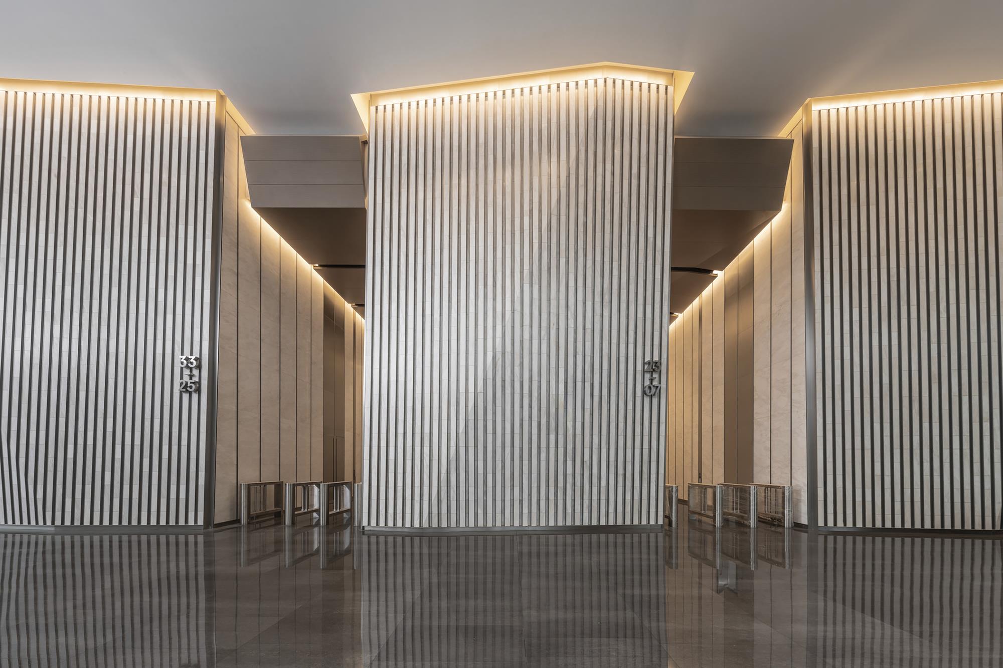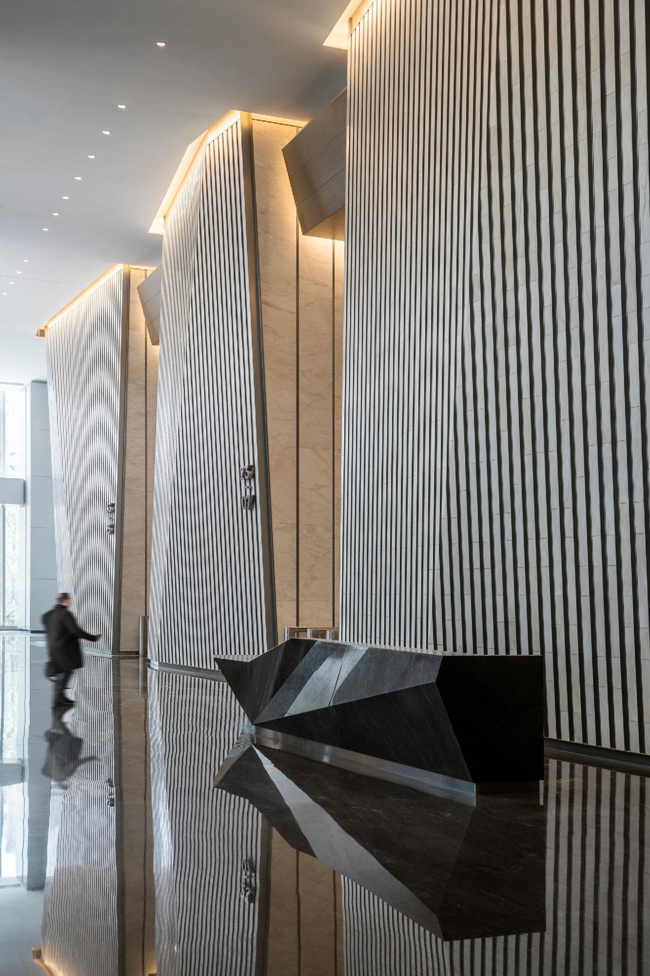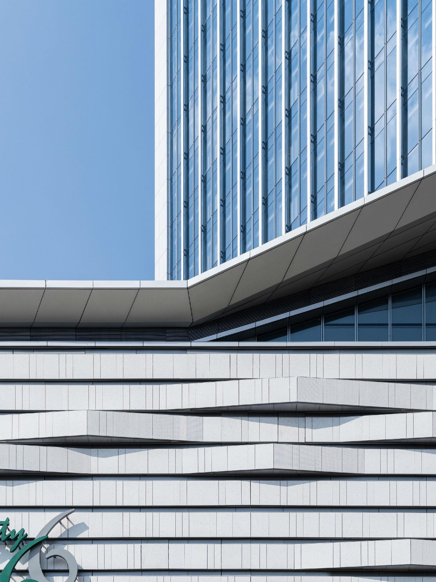 智能立面。受到該地區(qū)的田野和(hé)露台的啓發,零售裙樓的折疊幾何造型沿其主立面塑造出一個(gè)微妙而優雅的銜接,并融合了當地石材。凸面人字形在白天會(huì)在光影(yǐng)之間(jiān)産生(shēng)動态的交互作(zuò)用,而在夜晚,經過精心整合的照明(míng)裝置會(huì)發出令人愉悅的光芒。水(shuǐ)平元素在平台創建遮陽和(hé)形成一個(gè)關鍵的設計特點。