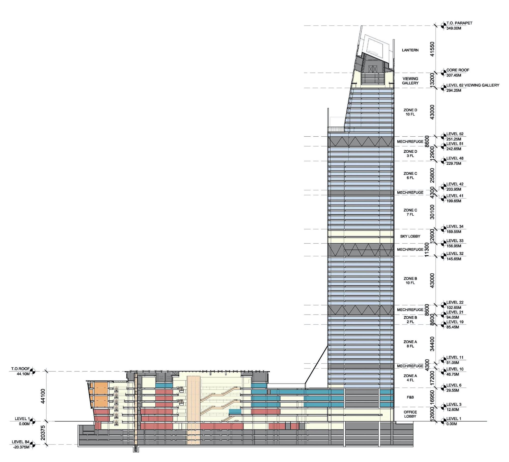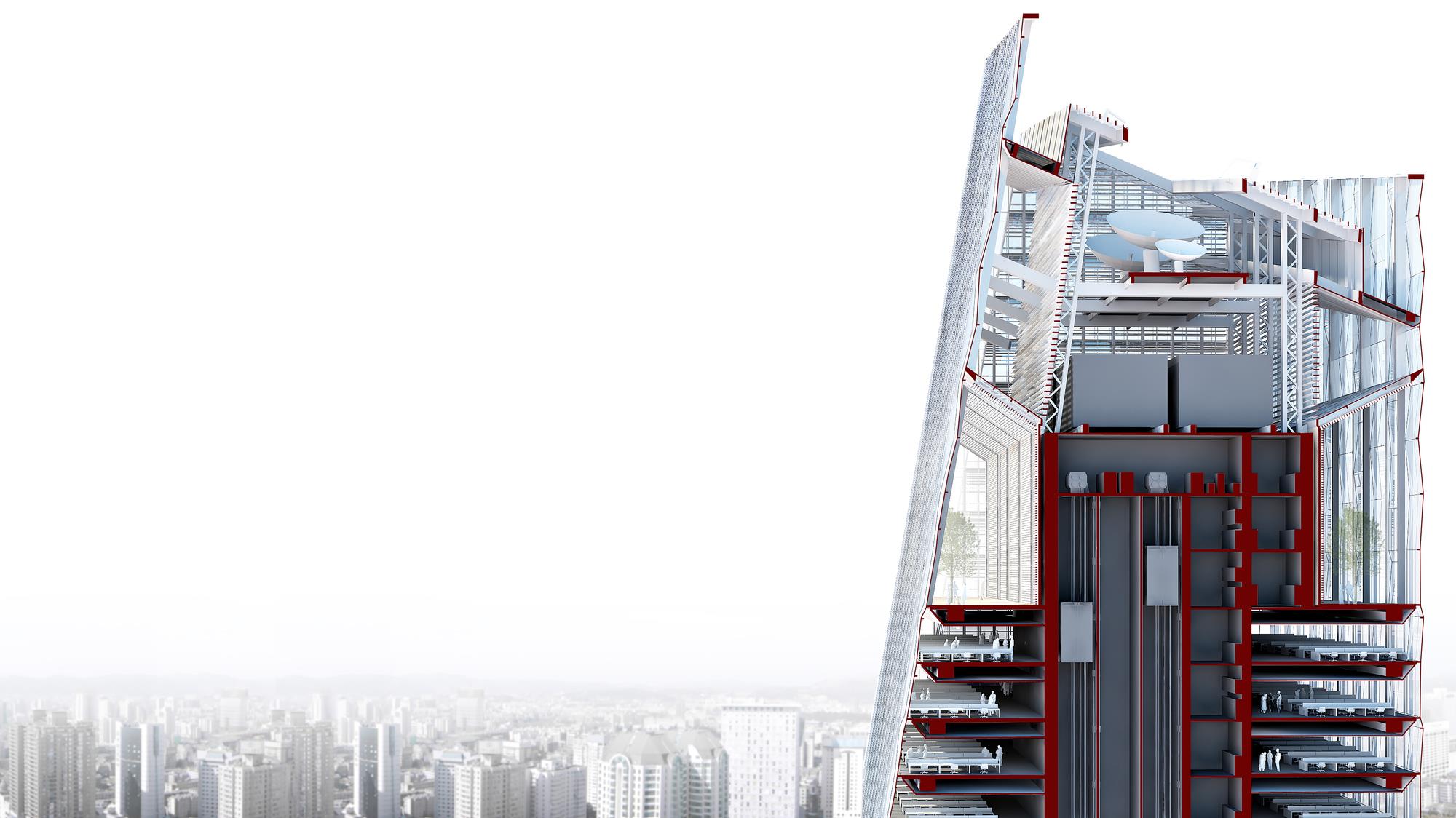 辦公大(dà)樓的立面有(yǒu)明(míng)顯的區(qū)别,可(kě)以适應日光定向和(hé)視野。每個(gè)立面都可(kě)以最大(dà)限度地利用建築內(nèi)部的自然光,同時還(hái)可(kě)減少(shǎo)熱量的獲取。東西立面上(shàng)的Y形鳍片提供遮陽,而南北立面則為(wèi)城市和(hé)自然景觀提供了一覽無餘的遠景。這座塔樓的頂部融合了特色照明(míng),形成了燈籠般的效果,極具視覺美感,從而昆明(míng)的天際線上(shàng)标出了恒隆廣場(chǎng)(Spring City 66)。