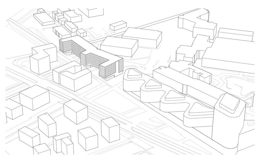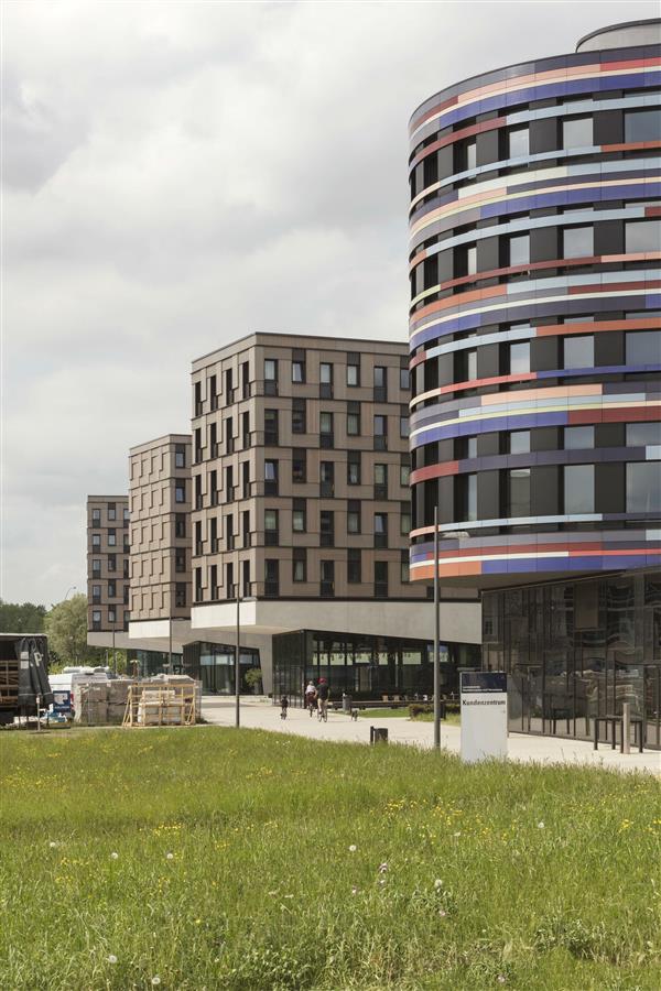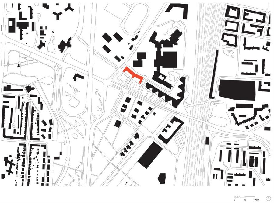交替的間(jiān)隔和(hé)突出結構清晰可(kě)見,這座長長的建築使它與周圍小型建築相适應。它的形态也延續了鄰近的城市發展和(hé)住房(fáng)區(qū)的韻律感。沿着繁忙的自行(xíng)車(chē)與行(xíng)人路線。